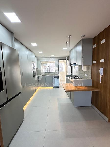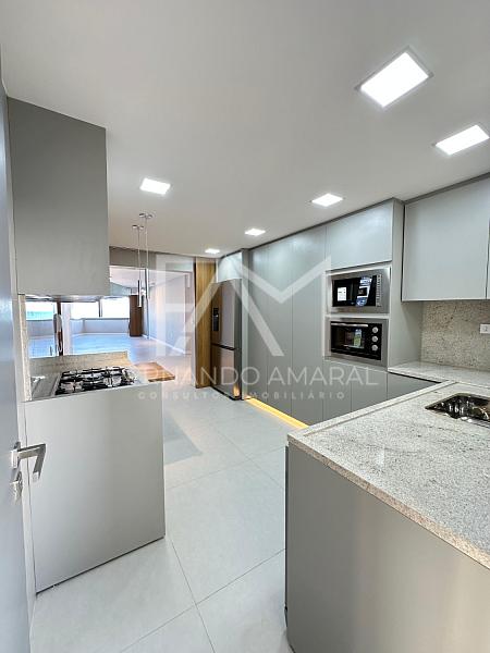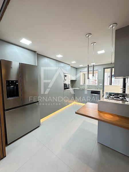 • Cozinha planejada com eletrodomésticos completos: cooktop, coifa, forno elétrico, micro-ondas, máquina de lavar louças e geladeira