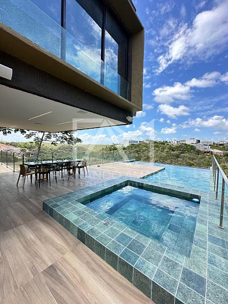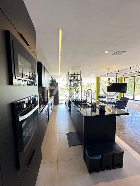 Belíssima casa no Condomínio Green Park, com 565,16 m² de área construída, projetada para quem busca sofisticação, conforto e lazer completo. O imóvel possui 4 suítes, amplas salas de estar e jantar, varanda, rooftop, cozinha, área de serviço e dependência completa (DCE).