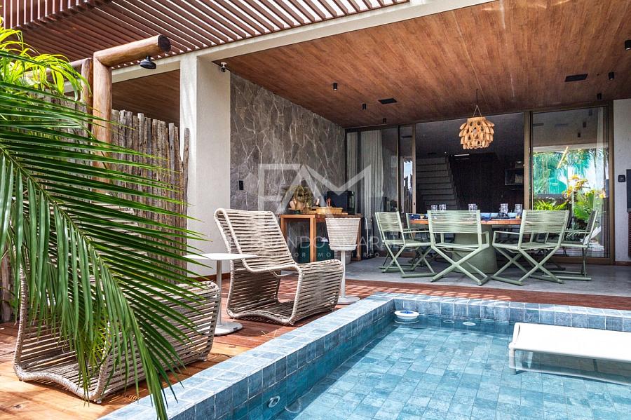 xclusividade, conforto e sofisticação em um dos destinos mais encantadores do litoral alagoano. Localizada em condomínio pé na areia com segurança 24h e acesso direto à Praia do Marceneiro, esta casa oferece o equilíbrio ideal entre luxo, lazer e praticidade. Com 200 m² de área privativa, a casa conta com: 4 suítes climatizadas Piscina privativa com espreguiçadeiras Área gourmet completa com churrasqueira a carvão, cervejeira, máquina de gelo e som ambiente integrado Home theater Cozinha equipada Wi-Fi de alta velocidade 2 vagas de garagem Mobiliário de alto padrão, pensado nos mínimos detalhes Perfeita para uso próprio ou como investimento para aluguel por temporada, em uma localização estratégica próxima à Capela dos Milagres e aos principais eventos da região. Entre em contato para mais informações ou agendamento de visita.