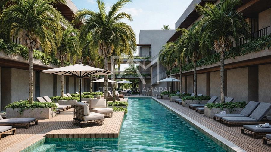 O projeto conta com infraestrutura completa, incluindo recepção, academia, spa, espaço beleza, bar lounge, piscina com bar e áreas de convivência, criando uma atmosfera de resort em meio ao cenário paradisíaco do litoral alagoano.